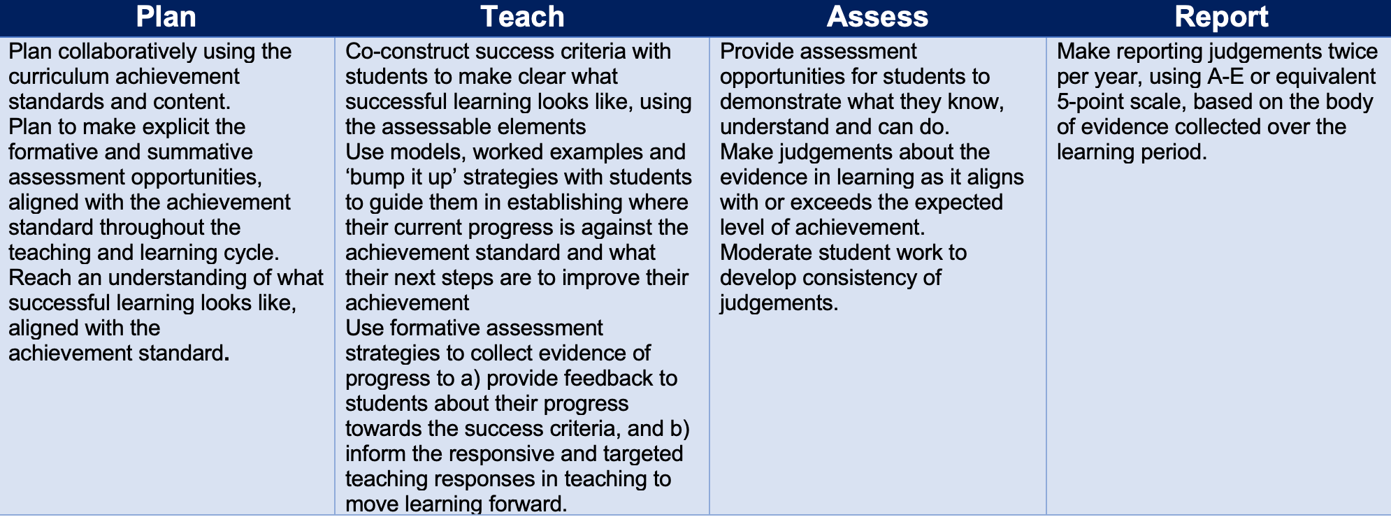 When teachers plan, teach and assess, they: