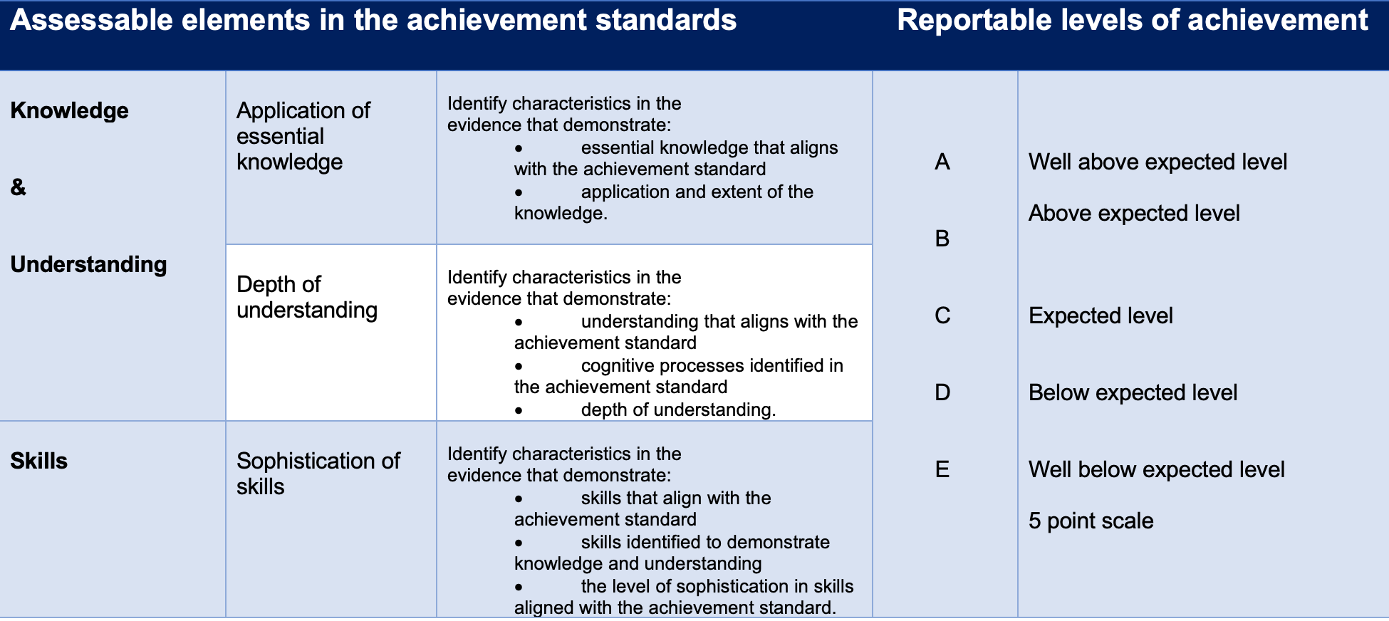 The sequence of achievement standards within each learning area emphasises the depth of conceptual understanding, the sophistication of skills and the ability to apply essential knowledge expected of students. (Shape of the Australian Curriculum, v5.0, June 2020, 64-65)